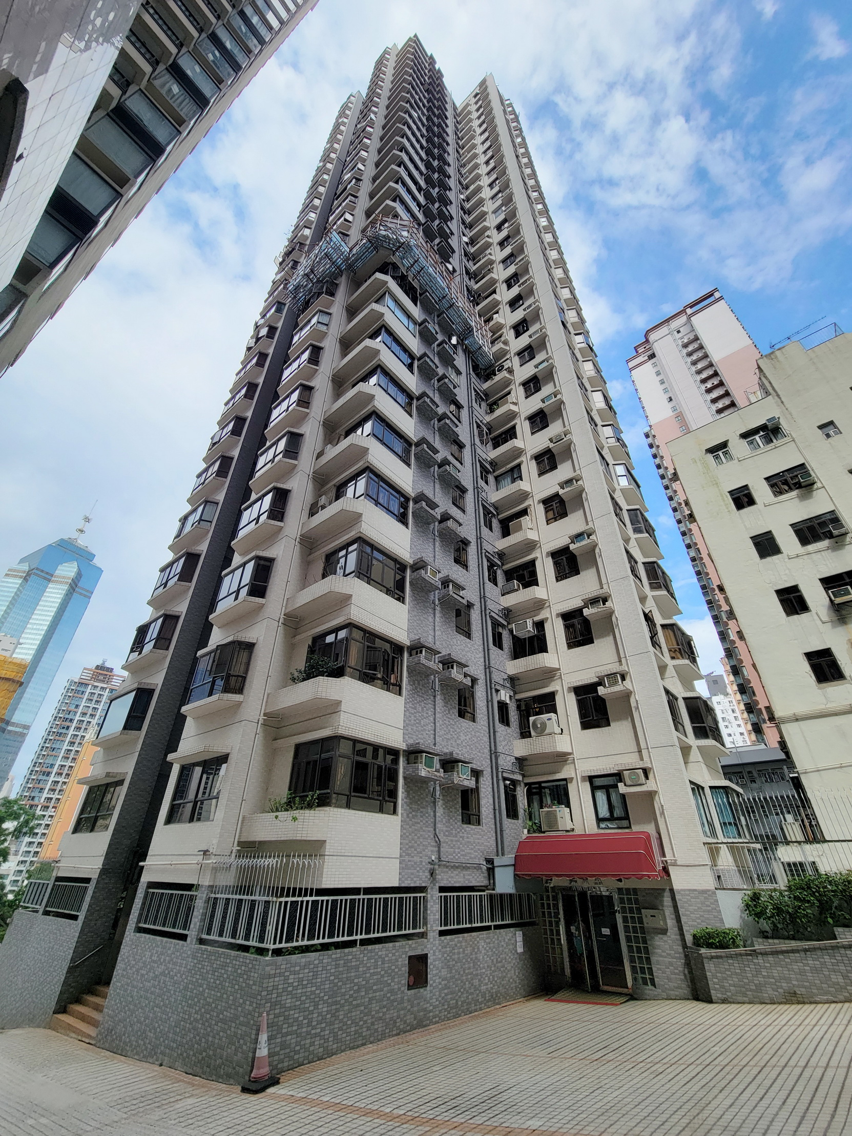 CORONA TOWER #嘉景台, a single highrise of 28 storeys with 8 apartments per floor and a total of 221 apartments. The standard apartments range from 436-791 sf saleable. The outside of the block has just been newly tiled and it is well located close to the escalator and the shops and restaurants of SOHO. Many are now nicely renovated and it is popular with young professionals.