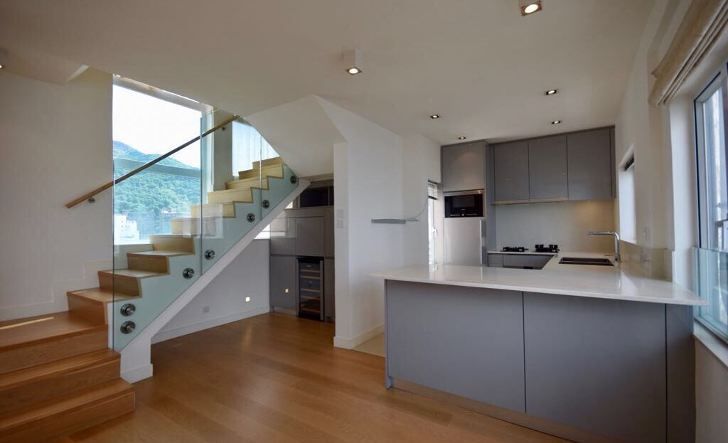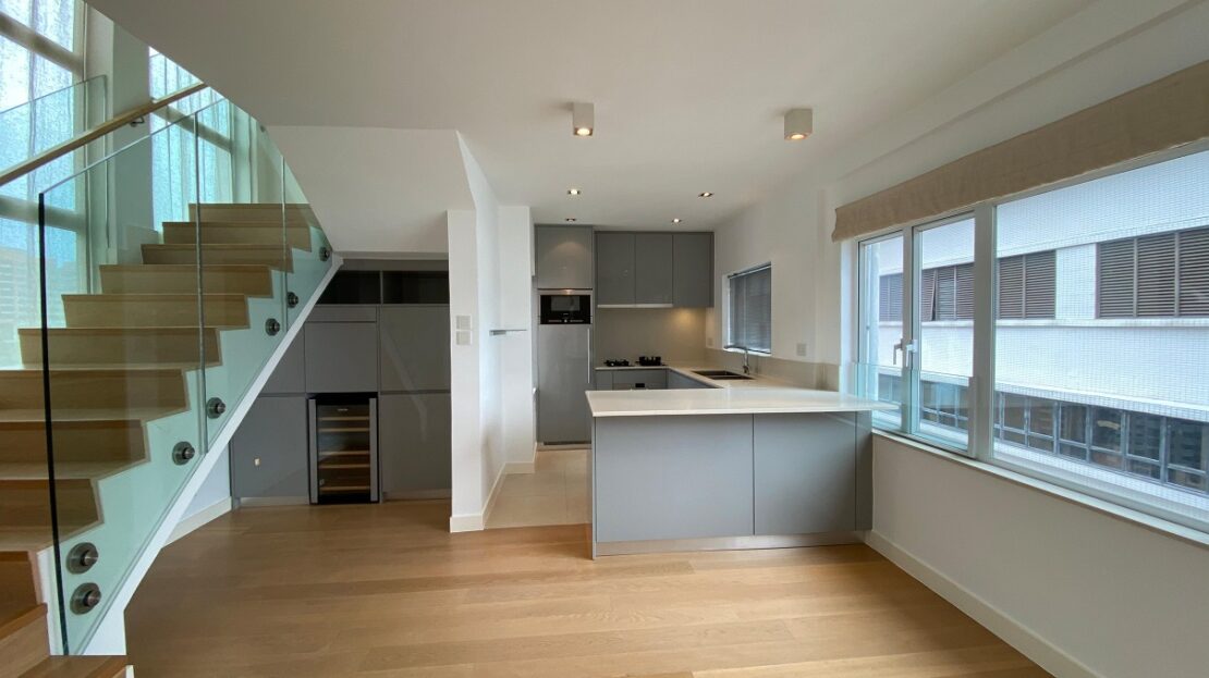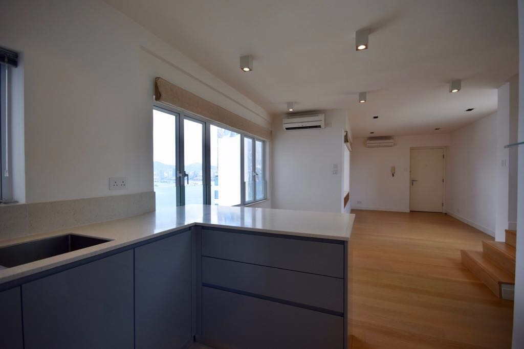 Lun Fung Court 龍豐閣, a 2-bedroom duplex located in Sai Ying Pun close to HKU MTR. There is an open sea view from the living space and an internal staircase connected to the upper duplex. An open-plan kitchen with all appliances and a built-in closet is available in the bedrooms for storage. Bright & cosy and for sale.