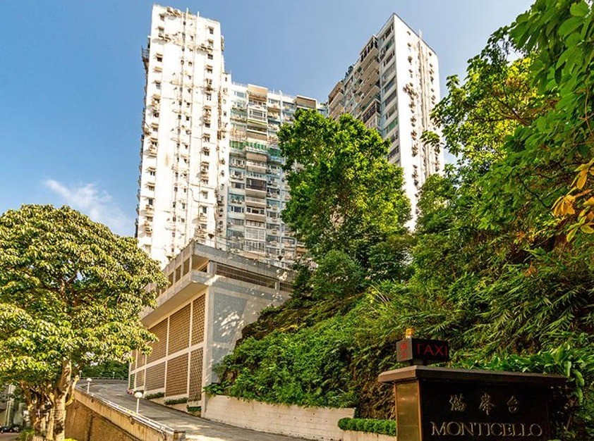 Completed in 1969, Monticello consists of 3 connected blocks each of 20 storeys A-F. Each block has 2 apartments per floor i.e 40 units altogather 120 apartments. The A and B blocks have larger apartments of 1232sf of saleable area and all are North facing with higher floors having harbor views. The CD blocks face west, towards Hong Kong Park and Central and the apartments are 1090 and 1107sf. EF are 1107 and 1075sf respectively, and again are north-facing views towards the Harbour. They all originally had balcony, but some are now enclosed. Layouts vary as they are multi owned. Being located midway along Kennedy Road behind the petrol station, there is easy access to both the steps down to Star Street and Pacific Place as well as to the Bowen Road running trail.